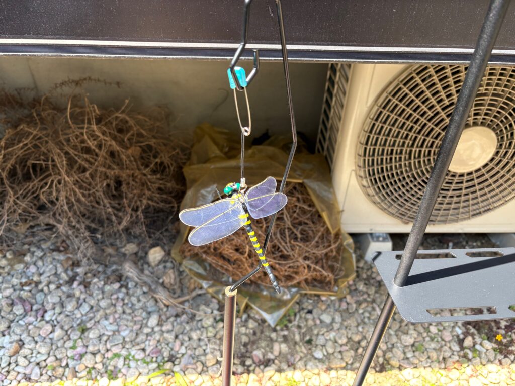 毎週やっているとその他はちょっとずつ要領がよくなったきました。今まで無駄にランタンを吊るしていましたが、今回からは虫除けにオニヤンマを吊るしました。そのせいかどうか分かりませんが、前回飛び始めていた虫が全然寄ってきませんでした。車中泊に向けて順調に練習できています。ちなみに裏山にちょっと桜が咲いていました。