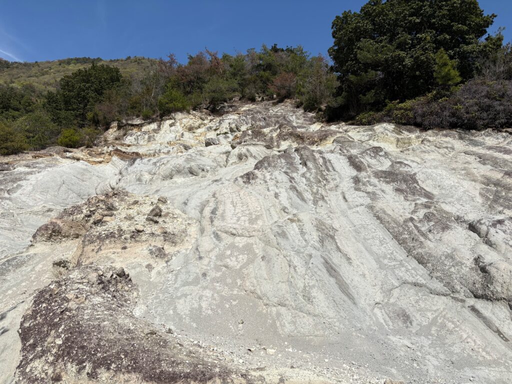 それとドローンで何ヶ所か撮影できました。白い崖というギョウカイカクレキ岩の地層に溶岩脈が入り込んでいる崖がありました。そこで俯瞰撮影モードでは高さが足りなく全体が写せませんでしたが、ズームアップモードではまあまあいい感じでした。だんだんと要領が分かっってきました。