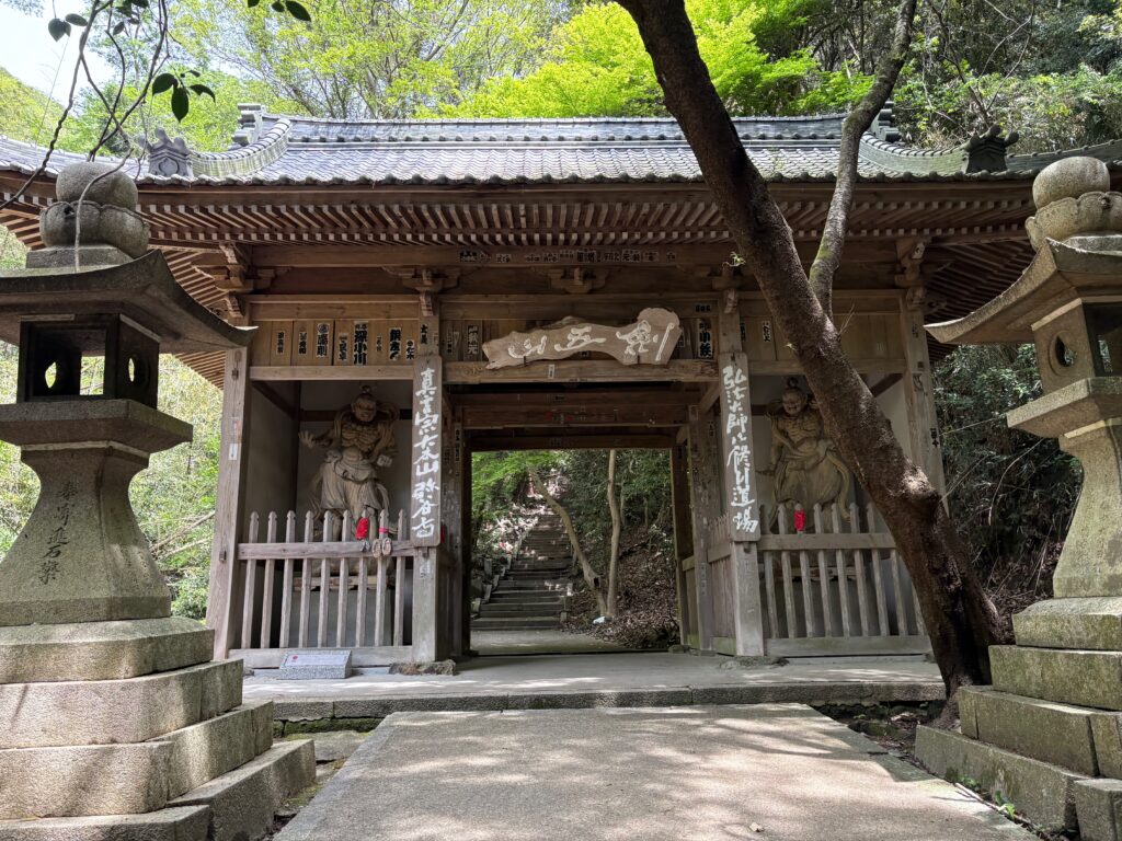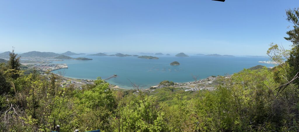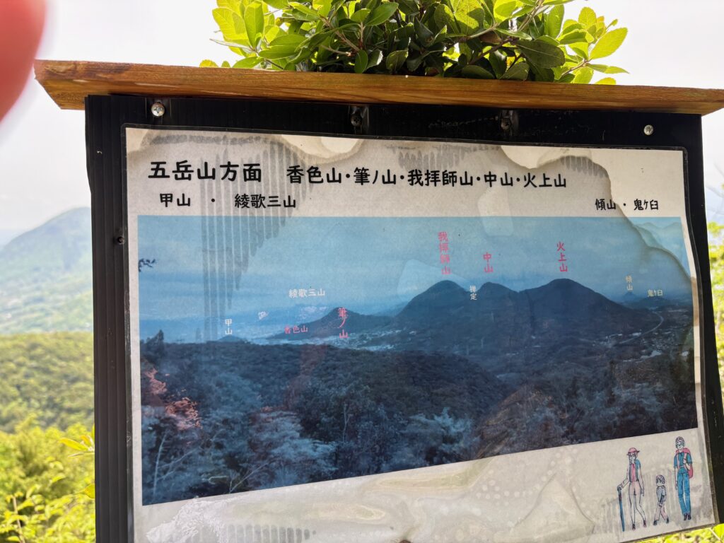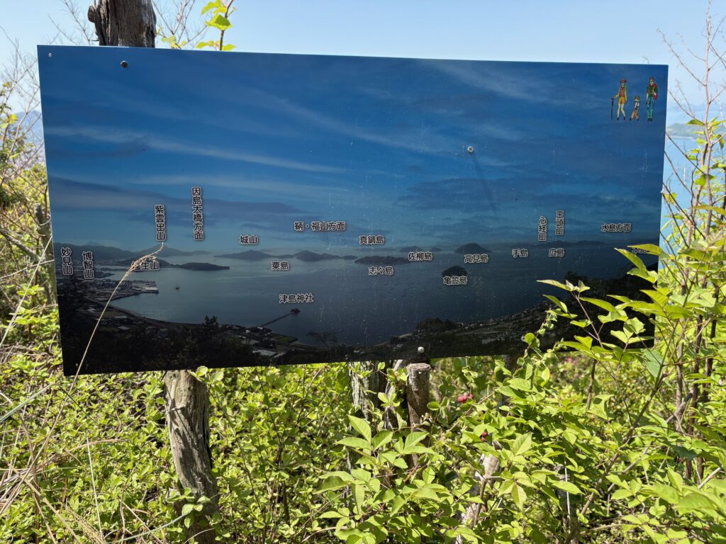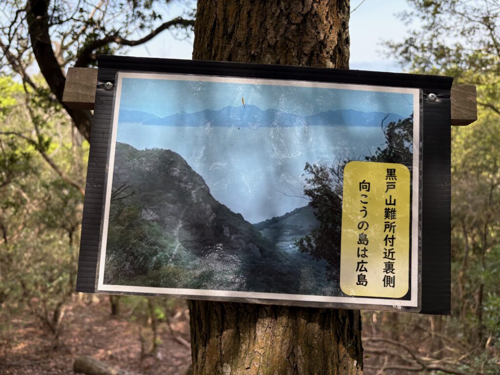 そのあとの登山は順調でした。「弥谷寺」の階段を530段上がったところで、本堂の反対側の登山道に入りました。その登山道を上り切ったら、あとは電力の鉄塔の巡視路を歩いていく感じです。最後に黒戸山に上がるときにまた登山道になりました。登山道は急登でしたが、巡視路はよく整備され適度なアップダウンがあって歩きやすかったです。途中地元の山岳会の方が木を切ってくれているビューポイントがいくつかあって楽しめました。ありがたいことです。