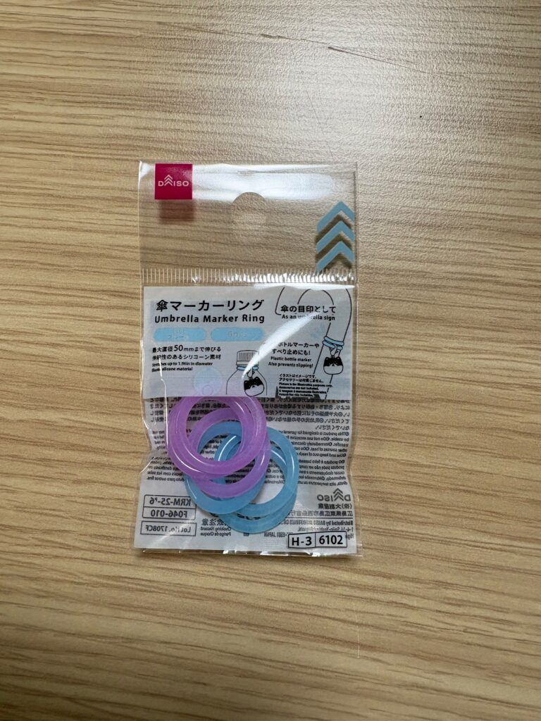「傘マーカーリング」はこれもポールの紐止め用です。昨日買ったキャップでもいいのですが、はめる時ちょっと硬かったので、こちらの方がすんなり止めれます。ともかくこれも実際に使ってみてです。