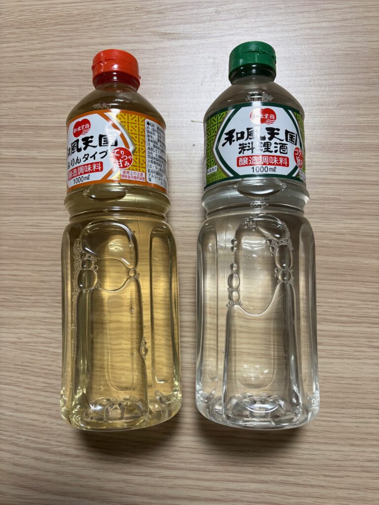 みりんと食用酒はその肉じゃが用です。これらは和食の基本でこれから何にでも使えます。