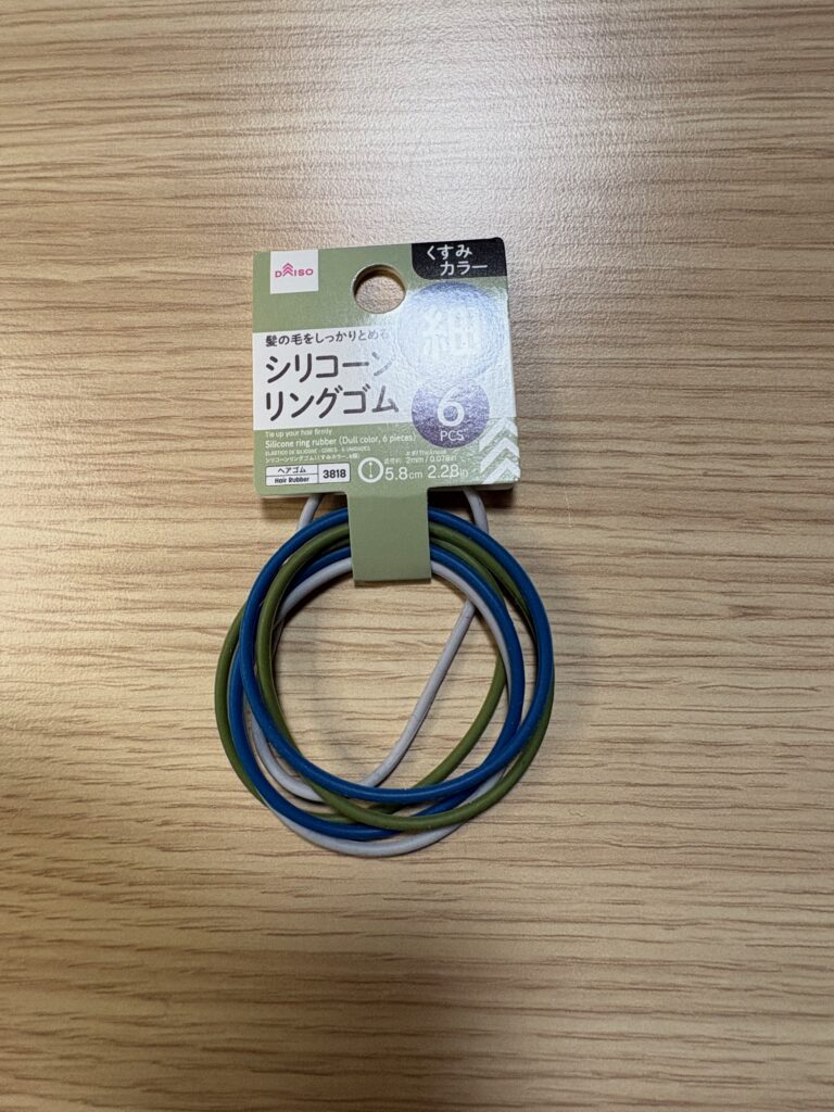 このシリコンゴムは髪を束ねるものですが、この前買ったアームカバーを止めるために買いました。今日は間に合わず輪ゴムで対処しました。それでも何とかなりましたが、これがあればちゃんと止まります。これも奥さんの進言です。