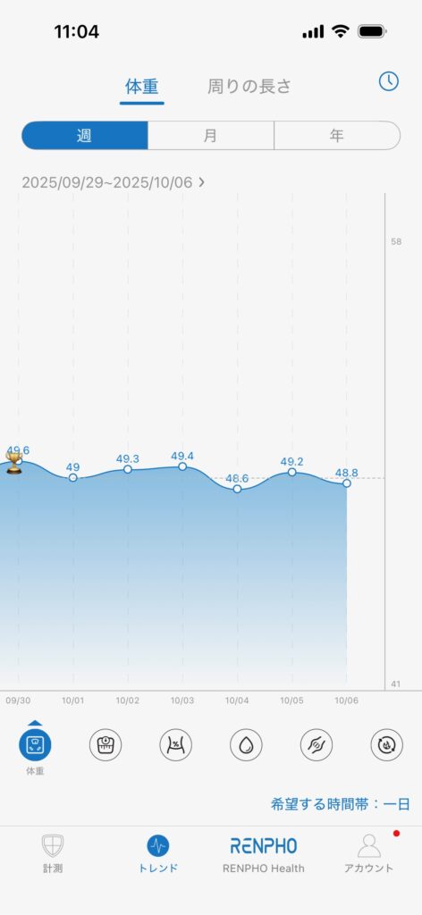 今週の最後は2日連続48キロ台をキープ出来ました。低緯度で安定してきた証拠です。いい感じですが、もっと安定すればこの「今週の体重」も打ち切りです。